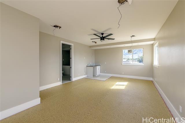 - Large home that just needs interior work and drywall by a licensed contractor to complete. Includes permit application for a new dwelling. Perfect for a spacious primary home or rental close to white sandy Makaha Beach. Vacant and easy to view.
