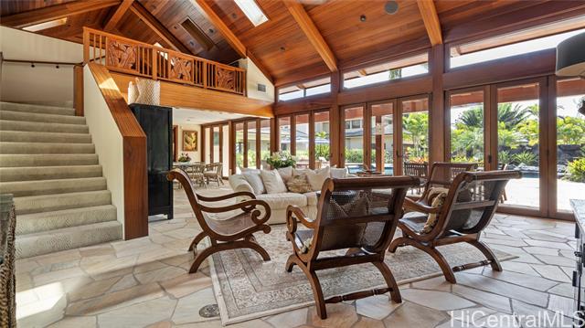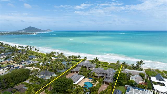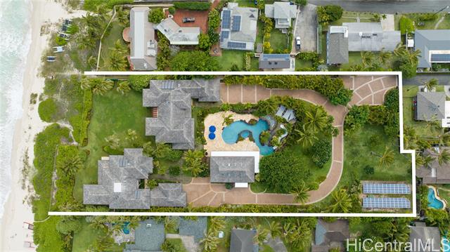 - Unparalleled, the Mele Komo Beachfront Estate located on the pristine shores of Kailua Beach, offers the most discerning connoisseur the ultimate in coastal living. With an impressive 12 beds and 13 baths, this 12,005 square-foot architectural marvel was meticulously designed prioritizing enjoyment with 9 ocean facing bedrooms and 11 private lanais. At 2.2-acres it's the largest residential lot on the Kailua Beachfront. The Primary Hale, boasting 6 beds and 6.5 baths within 5,835 sqft, and the Guest Hale, a companion masterpiece with 6 beds and 6.5 baths spanning 6,170 sqft, offer unparalleled living spaces designed with the perfect combination of luxury comforts and Hawaiian detail. Indulge in resort-style living with a 96,000 gallon pool showcasing a waterfall, slide, jacuzzi, and a private grotto. The 2,000 sqft Pool Cabana with a full kitchen, full bath, spacious loft, and laundry facilities adds an extra touch of convenience and comfort. Mele Komo provides the utmost in privacy and efficiency, featuring 94 photovoltaic panels, privately owned beach access, and stunning views of the famed Mokulua Islands. A unique opportunity to own a true jewel of the Hawaiian coastline.