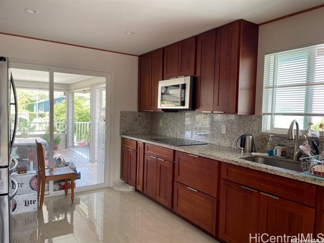 - Just totally remodeled and built brand new first floor two story single family house in Kapahulu neighborhood. Perfect for three families to live together. Second floor has its own entrance, new kitchen, 3 bedrooms, 2 bathrooms, and living room. Also features a large covered back porch as well as an open front deck. The first floor is separated into two units, 1 bedroom with a new kitchen, new bathroom, and its own separate entrance. The other unit features a new kitchen, 1 living room, 1 large family room, 2 bedrooms and 3 full bathrooms. In total there are 7 split AC units (3 on the 2nd floor, 4 on the 1st floor). The property also features a large carport area where you can fit about 6 compact cars as well as parking on the street. The renovations and additions have been completed as of this year with an approved ADU permit. Buyer is to do their due diligence. To be sold as is.