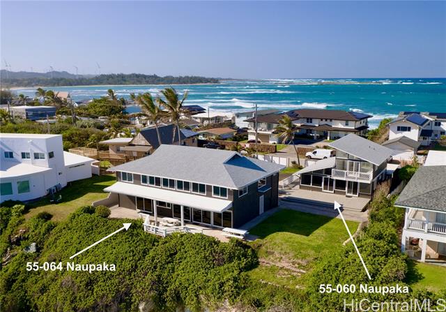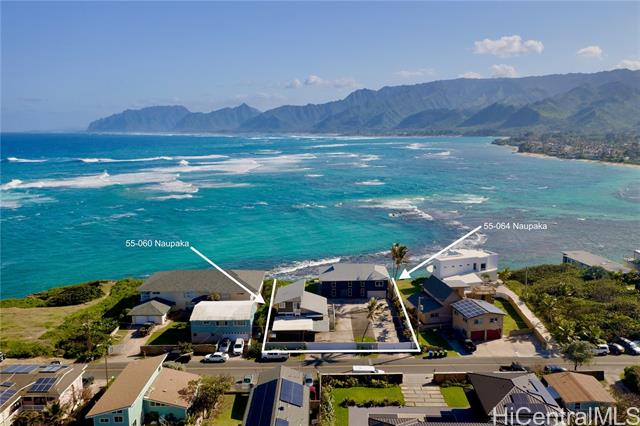 - Live your Hawaii dream in this gated oceanfront compound, perfectly situated on the serene Naupaka Peninsula of Laie Point. This sale includes 2 OCEANFRONT HOMES (11 bedrooms, 7 bathrooms) on a large 16,875 sq ft lot. With approximately 100 linear feet of unobstructed ocean frontage, enjoy stunning panoramic views of clear blue ocean, Laie Bay, and the majestic Ko'olau Mountains. Both homes were recently renovated. 55-060 Naupaka Street includes an approximately 1,478 sq ft 3 bedroom 2 bath home + a 1 bedroom 1 bath ohana unit. The larger 55-064 Naupaka Street includes an approximately 3,258 sq 7 bedroom 4 bath home & a 2 car garage. Both homes have their own separate individual Tax Map Key (TMK). Rare opportunity to own two adjacent oceanfront homes on the very desirable Laie Point. Very close to BYU, the Polynesian Cultural Center, North Shore beaches, Waimea Bay, Pipeline, & the 5-Star Turtle Bay Resort, farm-to-table restaurants, world class golf, oceanfront horseback riding, walking trails, and helicopter tours. Approximately an hour drive to Honolulu by car or 15 minutes by helicopter from Turtle Bay's Heliport. Very easy to view on short notice! Welcome home to paradise!