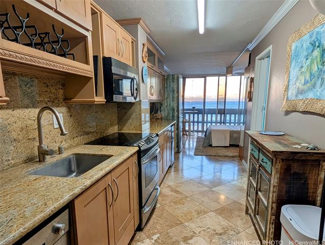 - Oceanfront living on this white sand beach next to Mount Lahilahi. This condo was completely renovated in 2006 and it's well maintained. Upgrades include granite surfaces, stainless steel appliances, two refrigerators and a tankless water heater. Open floorplan has a view towards the ocean from the front door. Murphy bed in the living area provides additional sleeping space for family get togethers. Sliding doors enclosed the lanai, increasing the interior living area.