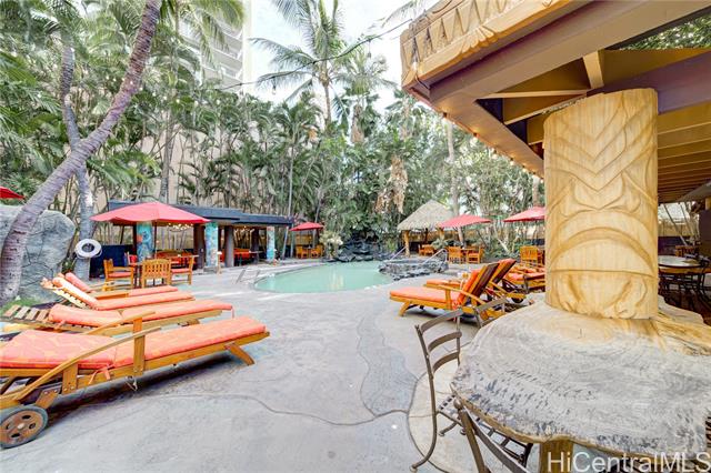 - Fulfill your dream of owning a piece of paradise at the Bamboo, a LEGAL CONDOTEL SHORT TERM VACATION RENTAL building in the heart of Waikiki, 2 blocks from Waikiki Beach and just steps to restaurants, shopping, entertainment and world class surfing! This spacious, very charming, 1 bedroom, turn-key, corner unit comes fully furnished and features beautiful mountain & city views, a lanai off of the bedroom, durable slate floors throughout, kitchenette with microwave, sink, mini fridge & 2 burner stovetop, 2 split ACs, a desk area, living area with futon couch for extra sleeping arrangements & a spacious bathroom. Comfortably sleeps 4. Very well-managed building with excellent amenities including a fun Tiki style pool with waterfall & lots of seating, Tiki pool bar/restaurant, surfboard storage, laundry on 3 floors (incl. 12th floor) front desk/concierge & 10 secure parking stalls in the building, available to you and your guests at $40/night. Maintenance fee includes ALL utilities for ease and convenience. Perfect for the part-time user with the flexibility of renting out on a short term basis to maximize income!