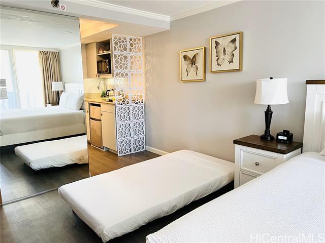 - Vacation Rental Permitted, Airbnb, VRBO, etc - Privately Managed, and not currently in the hotel pool. Fully furnished unit in a boutique condominium hotel with a high occupancy rate, has WiFi, two Queen beds, a kitchenette with a cooktop, fridge, coffee pot, and toaster. The Bamboo Hotel has a "Zen" atmosphere that you will enjoy and be able to relax in the middle of Waikiki. You will be able to use the beautiful pool area which has Hawaiian foliage and a waterfall to remind you that you are in the tropics. Desirable location, less than 1.5 blocks to the beach, minutes from the great shopping at International Marketplace and the Royal Hawaiian, top-notch restaurants, and shopping. Unit to be sold in "As-Is" condition