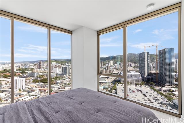 - Sky Ala Moana West Unit 2811 offers breathtaking panoramic views of Honolulu’s skyline, lush mountains, and sparkling ocean from its floor-to-ceiling windows and private lanai. The modern kitchen features sleek cabinetry, quartz countertops, and high-end Bosch appliances, creating a seamless blend of style and functionality. Residents enjoy exclusive access to resort-style amenities, including a luxurious pool, open green spaces, and a fully equipped fitness center, as well as the Sky Terrace Spa in the connected hotel tower, featuring a steam and dry sauna, Ofuro, and a refreshing cold plunge for ultimate relaxation.