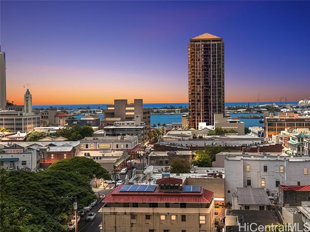 - Experience the best of urban living in this well-maintained 2-bedroom, 2-bathroom condo located in the sought-after Honolulu Tower. This spectacular unit is in move-in ready condition. Enjoy abundant natural light and breathtaking panoramic city, ocean, and harbor views through floor-to-ceiling windows. Relax on your private lanai as you watch stunning evening sunsets. This secure residence features a gated parking stall, on-site resident manager, and 24/7 security for peace of mind. Resort-like amenities await you, including a sparkling swimming pool, hot tub, manicured landscaping, and BBQ areas. Conveniently located, you're just moments away from Chinatown, art studios, Hawaii Pacific University, farmers markets, the historic Hawaii Theatre, diverse eateries, and boutique shops. This condo offers both convenience and the perfect urban retreat, all in the heart of Honolulu.