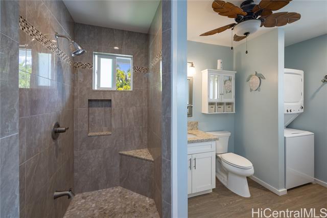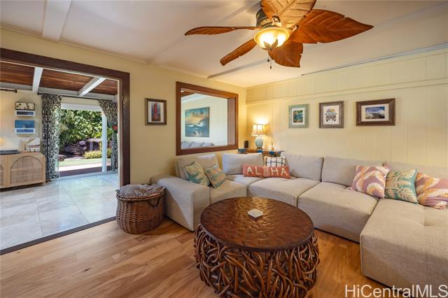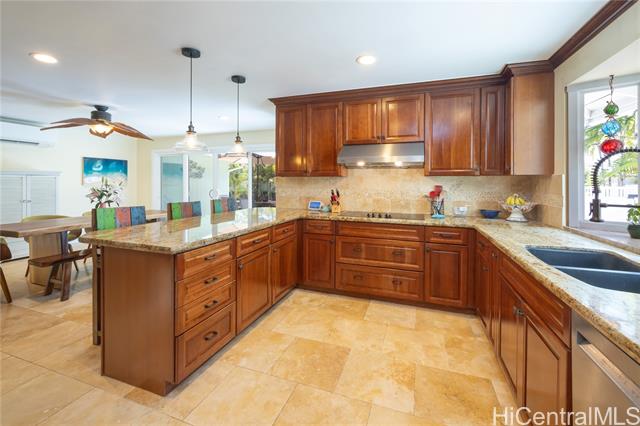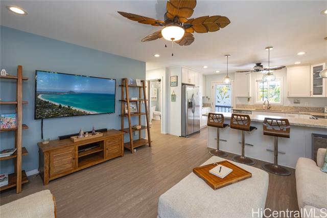 - Experience the Best of Kailua Living in this beautifully upgraded 4-bed/3.5 bath home featuring a legal ADU on a large, custom landscaped lot. Designed for comfort and functionality, this property offers stylish high-end finishes, an open layout, & seamless indoor-outdoor flow. The main house welcomes you with 3 bed/2.5 bath & cooling trade winds perfect for enjoying the island lifestyle. The chef’s kitchen is a true delight, perfect for entertaining or everyday living. It boasts KraftMaid cabinets, double-wall oven & granite counters. Retreat to the primary suite with its soothing bathroom and walk-in California Closet. The custom-designed legal ADU was thoughtfully crafted with meticulous detail to provide long-term comfort and independence for the owner’s parent. The huge outdoor lanai extends this living space & is ideal for extended family, guests, or rental income. Energy efficiency abounds w/ 38 owned PV panels, 2 storage batteries and 2 solar water heaters. Add'l features include a laundry room, split AC’s, workshop, cvrd parking for a boat, outdoor shower & a fully fenced yard w/ an automatic gate for privacy. Wonderful location just min. from world-famous Kailua Beach!