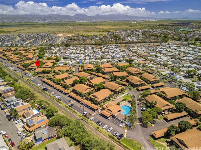 - Charming 2-bedroom, 1.5 ground floor unit in the desirable Palm Villas 1. This corner unit offers stunning unobstructed views of the Waianae Mountain range and sunsets, with easy access to the lovely courtyard, perfect for entertaining. Includes one covered parking stall and one open stall, plus ample guest parking. Enjoy the convenience of being close to the complex swimming pool and just minutes away from Genki Sushi, Foodland, Longs drugs, and beautiful white sandy beaches. Experience the best of West Oahu living!