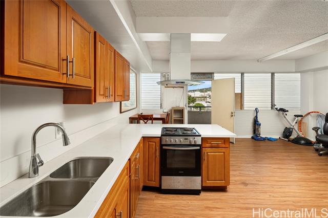 - Large BMX-3 Unit with one unassigned parking stall, one full bath and Kitchen recently remodeled in a central location walk to University Hawaii, close to Bus, shopping, restaurants. Third story walk-up.