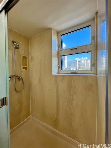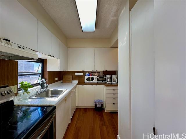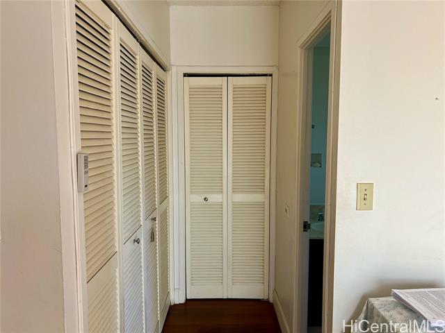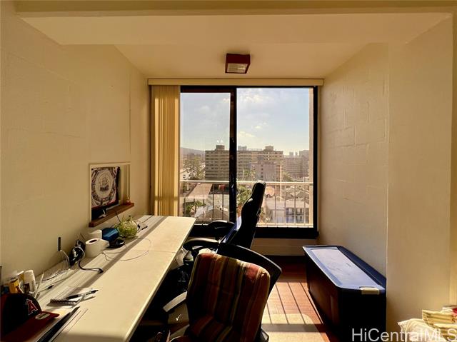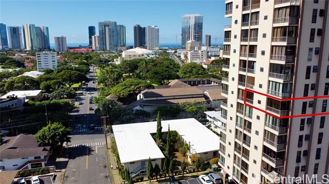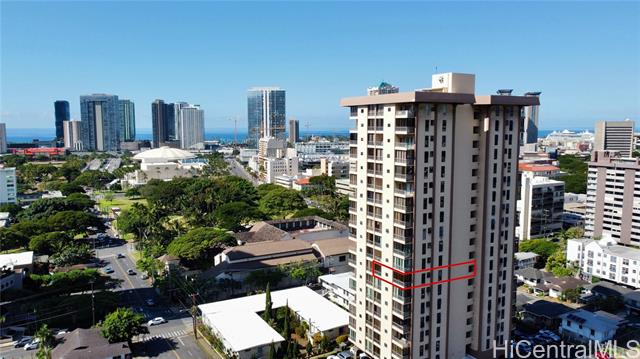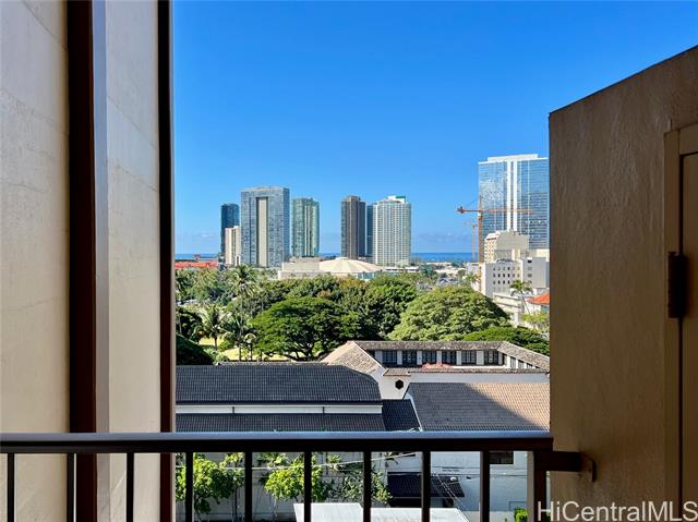 - Big price improvement of 52,000! Urban living redefined in this exceptional corner-end condominium at the prestigious Coronet building. This is a fee simple property, NO monthly lease fee!!! Over 1,100 square feet of spacious living with two generous bedrooms, two well-maintained bathrooms with a retro vibe, and an assigned parking spot. Thoughtfully equipped with an in-unit washer and dryer. Inviting living area with an impressive double-door entrance, lofty 9-foot-high ceilings, and floor-to-ceiling windows flood the space with natural light. Primary bedroom is a true sanctuary with an enclosed lanai. A second large lanai has been ingeniously transformed into a home office with a full-size slider to open for ocean breezes. Convenience is paramount with a private storage area just outside your door, dedicated bike storage on the ground floor, and a prime location in the heart of the city with easy freeway and bus-line access. Security and pet-friendliness are fundamental characteristics of this building. Immerse yourself in the epitome of urban living in this unparalleled opportunity a short walk to Honolulu Art Museum and Thomas Square Park.