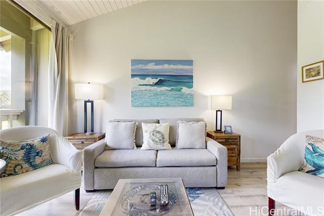 - Seller Highly Motivated! Seize this rare chance to own a legal daily vacation rental just steps away from world famous, Turtle Bay Ritz-Carlton Resort. This fully furnished, turn-key condo is a serene retreat on Oahu's North Shore. The exquisite studio, with a sleeping loft and queen-size bed, features a stylish bathroom with a newly tiled shower, mosaic floor, and glass doors. The kitchen is both functional and elegant with shaker-style cabinets, quartz countertops, and new appliances. Enjoy luxury vinyl plank flooring on the first floor and plush carpet in the loft, all complemented by fresh paint and a new staircase with ample storage. Benefit from in-unit laundry, parking, and breathtaking golf course views within a gated community. The amenities include two pools, BBQ areas, tennis courts, Pickle-ball courts, lush landscaping, guest parking, and 24-hour security. Just steps from world-class dining, white sand beaches, and stunning sunsets. This is a fantastic opportunity to generate income from your vacation home. Don’t miss this income-producing gem on Oahu’s North Shore!