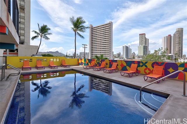 - This studio offers a lovely space full of potential just waiting for your personal touch. Go outside onto your private lanai and take in the peaceful view, a great spot to relax and enjoy the surroundings. Inside, the home features a full kitchen and walk-in closet to keep things organized. With one assigned parking stall, secure key fob entry, and a trash chute, everyday life is made easier. You’ll also have access to a community laundry facility, an exercise room, and refreshing pool. With its inviting layout and practical features, this studio is ready for you to move in and make it your own.