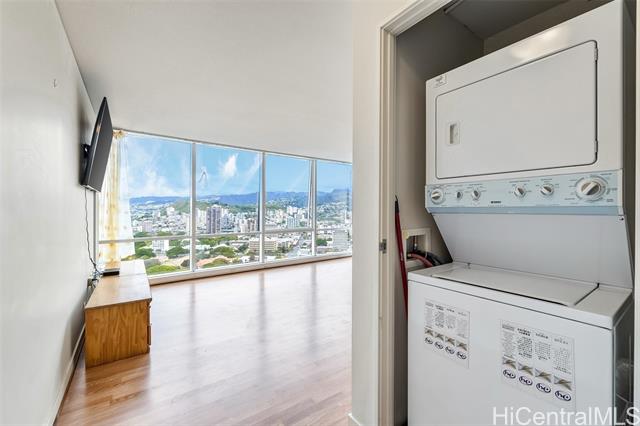 - Experience prime location luxury living in this spacious 1-bedroom, 1-bathroom condominium located on the 37th floor of the Moana Pacific. This unit offers breathtaking panoramic views of the city skyline and mountains. The unit features an open kitchen floor plan, with a Sub-Zero refrigerator that integrates with the cabinetry. Additional conveniences include an in-unit washer and dryer, a walk-in closet, floor to ceiling windows and a TV with a wall mount, which the seller is leaving for the new owner. Enjoy resort like amenities, including a swimming pool, jacuzzi, fitness center, tennis courts, BBQ area, movie theaters, and more. Perfect for hosting friends and family and plenty of guest parking. Located in the Kakaako neighborhood, this condominium is close to Ala Moana Beach Park, the Ala Moana Shopping Center, and a variety of dining and entertainment options. Maintenace fee: $894.21 Cable/Internet Fee: $56