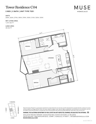 - Introducing Muse Honolulu, Ala Moana’s newest luxury development featuring a dynamic collection of 315 thoughtfully designed residences, including two-story Townhomes, Urban Lofts, and Tower Residences. This 2-bedroom, 2-bathroom, 2-parking residence offers 1,151 square feet of interior living space and a lanai to enjoy to ocean and city views. This residence features top-of-the-line appliances, including Sub-Zero refrigeration, Wolf cooking appliances, and Cove dishwashers—hallmarks of premium craftsmanship. Additional highlights include approximately 9’3” ceiling heights, elegant engineered wood flooring, plush carpeting in the bedrooms, and premium Studio Becker cabinetry. Residents can also enjoy three levels of resort-style amenities, or explore the neighborhood and experience the convenience of world-class shopping, dining, and entertainment all just moments away. *Photos are renderings and/or enhanced images. Property tax information is not yet available as Muse Honolulu is a new development. Future tax assessments will be determined by the City & County of Honolulu upon project completion.