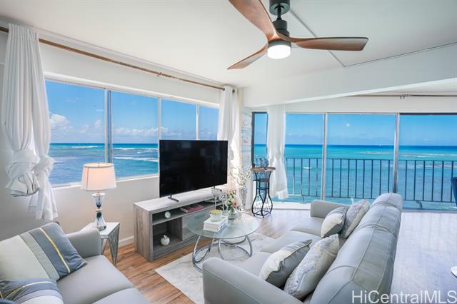 - Experience this rare opportunity to own a one-bedroom oceanfront unit at Diamond Head Ambassador. Embrace the coveted Gold Coast lifestyle and enjoy panoramic views with stunning sunsets, whale watching, and the calming sound of waves from your private lanai. This move-in-ready home features a newly remodeled and expanded kitchen, a modernized bathroom, and new LVT flooring. The well-kept property also includes updated plumbing and a renovated saltwater pool. This is oceanfront living at its finest.