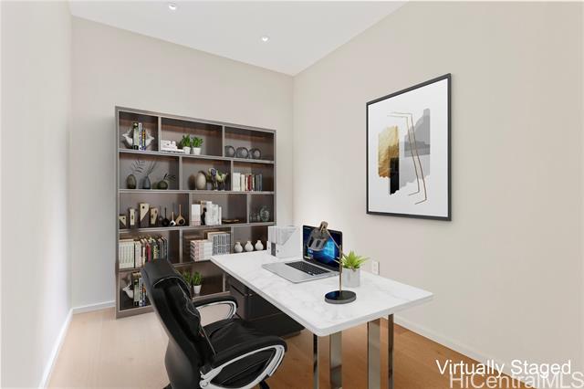 - Experience the unparalleled charm of this exceptional 2-bedroom, 2-bath residence at Park Lane Ala Moana, setting itself apart from the rest. Spanning 1,636 sq. ft., this home features an expansive 633 sq. ft. outdoor lanai—one of the largest in the building—complete with a private hot tub and ample space for entertaining or relaxing. Soaring 10-foot ceilings create a bright and airy atmosphere, the chef-inspired kitchen boasts premium Wolf appliances and a Subzero refrigerator, ideal for culinary enthusiasts. The spacious walk-in laundry room offers additional pantry space alongside your washer and dryer, ensuring seamless living. Whether hosting gatherings or enjoying tranquil moments, your lanai, equipped with a Wolf BBQ and fridge, is perfect for effortless entertaining. The primary bedroom includes a generous walk-in closet, complemented by an additional den that provides flexible living options tailored to your lifestyle. Discover the perfect blend of leisure and sophistication at Park Lane Ala Moana—where comfort meets style.