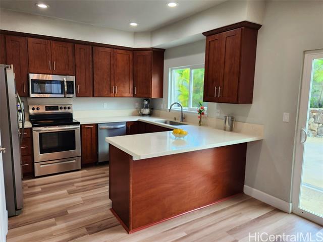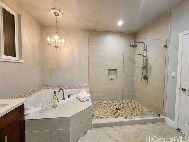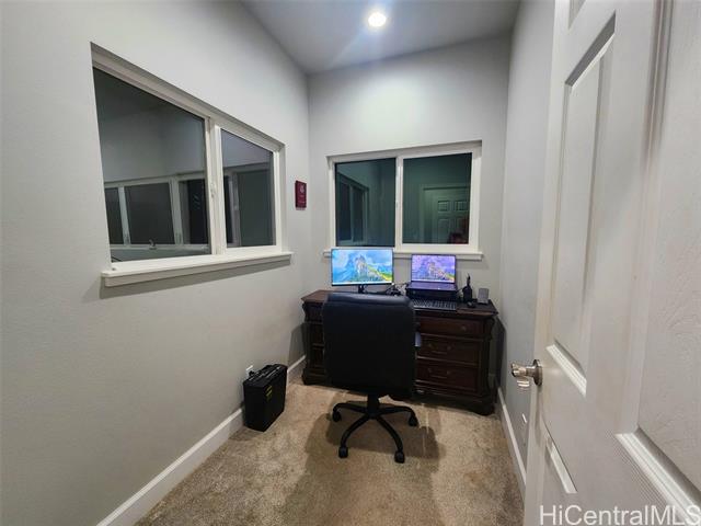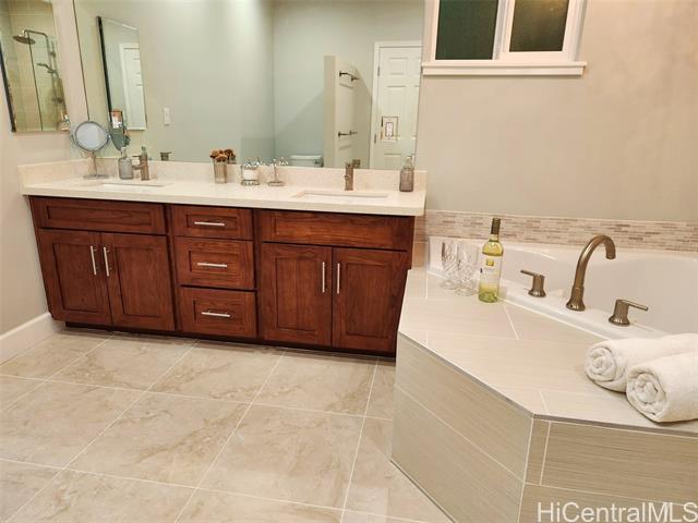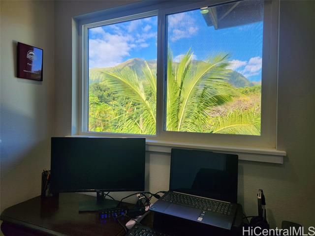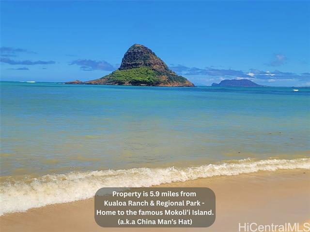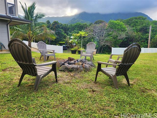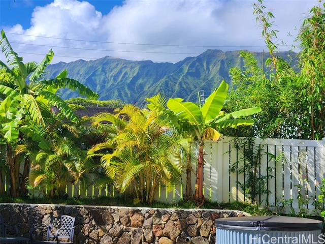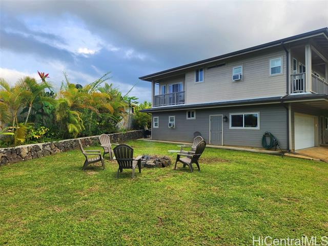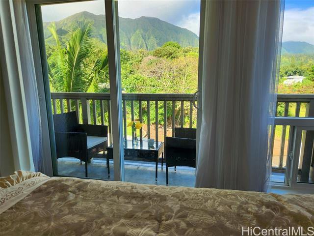 - Constructed in 2019, 4-bed, 3.5-bath Kahaluu home w/ stunning mountain views from nearly every window! Open floor plan features a 2-story living room with abundant light, flowing into a dining area & modern kitchen with quartz counters, stainless steel appliances & solid wood cabinets. Wood look laminate floors throughout. The primary suite boasts a tiled jetted tub, large tiled shower & dual vanities. Three upstairs bedrooms feature private balconies, while the convenient downstairs bedroom offers its own private bathroom, with laundry facilities conveniently located in the garage. Enjoy outdoor living on the concrete lanai or in the side yard with lawn & fire pit. Lush landscaping, including banana, papaya, and coconut, with an irrigation and drainage system. Prime location on a quiet street next to Kahaluu Elementary School, Kahaluu Regional Park & boat ramp. Close to Kualoa Ranch & Chinaman's Hat. The house is equipped with a solar panel that heats the water. Your Oahu oasis awaits!