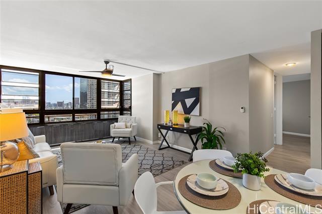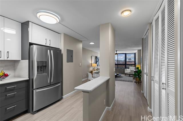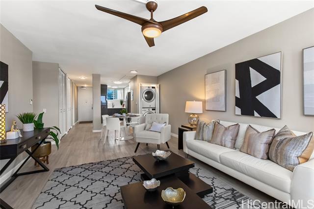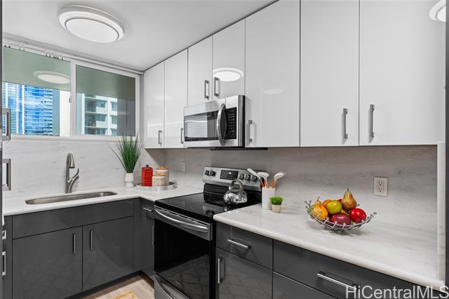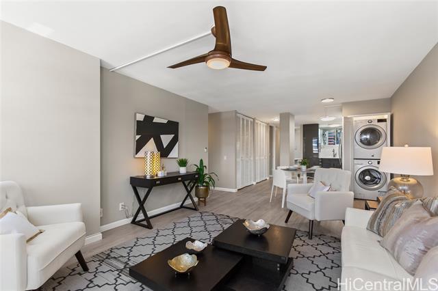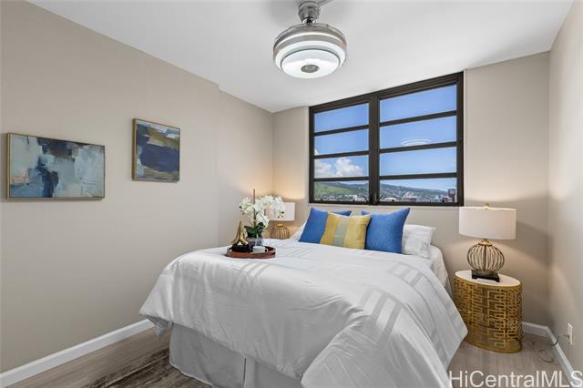 - Live in the heart of Honolulu! This rarely available 3-Bedroom/2-Bathroom unit at Kapiolani Bel-Aire offers the perfect blend of comfort, convenience, and luxury. This beautiful unit has been fully renovated with luxury vinyl flooring, granite countertops and backsplash in the kitchen, complemented by lovely high-gloss cabinets, and stainless-steel appliances and sink. Large primary bedroom! Both the Primary and 2nd bathroom have been upgraded with tile flooring, matching tile showers, quartz countertops, and high-gloss cabinets. The LG front-load washer & dryer units are situated just off the dining and living room area in a double door enclosure to optimize space and convenience. Modern light fixtures throughout the unit and retractable blade ceiling fans with built-in Bluetooth enabled speakers in all 3 bedrooms. Kapiolani Bel-Aire has a swimming pool, nicely designed lobby, and assigned storage locker for the unit. Located just across the street from Don Quijote. Walking distance from Ala Moana Shopping Center, beaches, dining, and entertainment. Pet friendly: one pet per unit up to 20 lbs. Perfect for first-time homebuyers, investors, or people looking to upgrade!