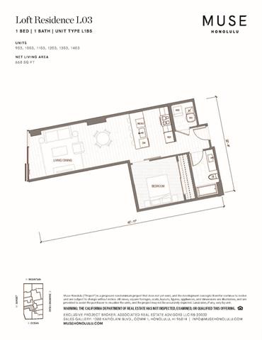 - Introducing Muse Honolulu, Ala Moana’s newest luxury development featuring a dynamic collection of 315 thoughtfully designed residences, offering three distinct home types; two-story Townhomes, Urban Lofts, and Tower Residences. Urban Loft Residence 903 exemplifies sophisticated metropolitan living, where cutting-edge design meets understated luxury. Soaring approx. 10'3" ceilings with Juliet balcony, refined concrete finishes, and exposed architectural ductwork evoke the essence of modern urban elegance. Each residence features top-of-the-line stainless steel appliances, including Sub-Zero refrigeration, Wolf cooking appliances, and a Cove dishwasher. Enjoy true refined urban living with three levels of resort like amenities and the convenience of world class shopping right across the street! *Photos on this listing are renderings and/or enhanced.* Disclaimer: Property tax information is not yet available as Muse Honolulu is a new development. Future tax assessments will be determined by the City & County of Honolulu. CPR number has not yet been determined. The CPR number is not a valid CPR number and was used strictly for MLS input purposes