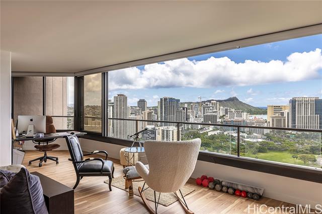 - Panoramic DIAMOND HEAD, OCEAN, & FIREWORK views from the 35th floor of the iconic Canterbury Place! Stack "C" is a spacious 2 bed 2 bath unit with 1400+ Sqft of living space. An open concept layout allows you to enjoy views from any seat in the home, a true epitome of Hawaii living. Upgrades to the unit include elegant hardwood flooring, mirrored backsplash, central AC, and much more. Relax and unwind from the comfort of your resort like amenities that include a heated pool, jacuzzi, pickleball, sauna, & BBQ. Canterbury Pl is setback behind Fort Derussy Park and offers quick access to sandy beaches, Ala Moana Center, and world class dining.
