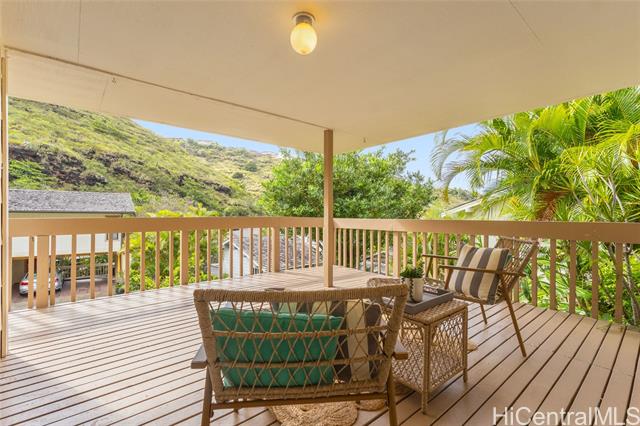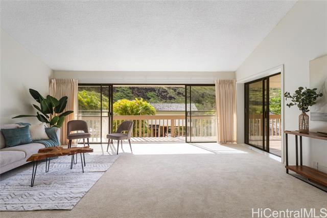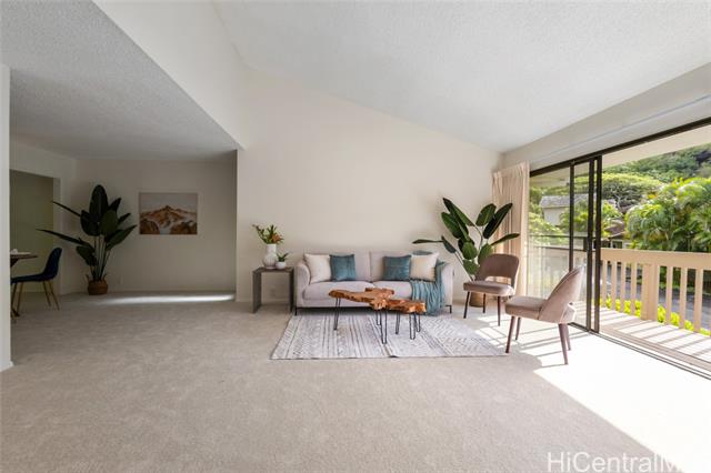 - This upper-area home in Kalani Iki Estates offers a prime opportunity to customize and make it your own. Featuring the highly desirable layout with a carport and basement located beneath the main living area, this home includes a spacious deck—perfect for entertaining guests while enjoying serene valley views. With 4 bedrooms, 2 full bathrooms, and a powder room, the home has been freshly updated with brand-new carpet and interior paint. The high ceilings in the living room create an airy, welcoming atmosphere. Kalani Iki Estates is a sought-after community that offers fantastic amenities including a recreation area, pool, tennis court, and scenic walking paths—ideal for leisurely strolls throughout the neighborhood. Kalani Iki Estates is located close to Kahala Mall, restaurants and shops and being so close to town and Waikiki makes it convenient! This CPR home has maintenance fees which include basic cable, common area maintenance and trash pickup. Sewer and water are billed separately and homeowners are responsible for their own home owners insurance for the house.
