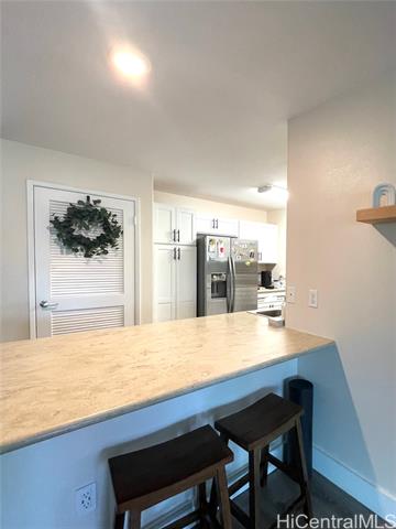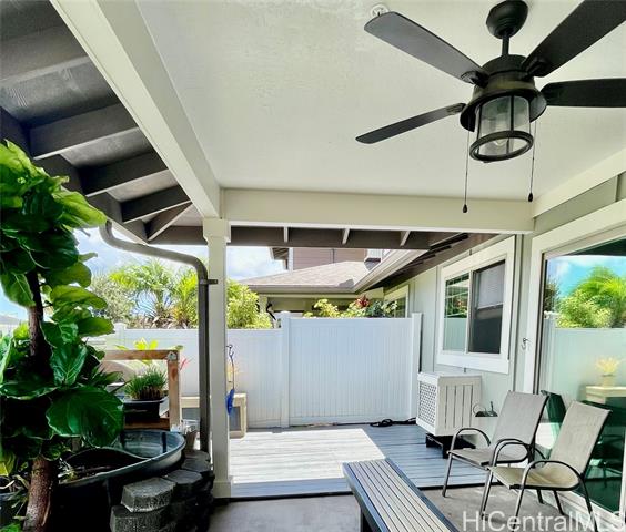 - Wonderful ground floor 2-bedroom, 2 full bathroom perimeter unit with a private backyard that includes a working pond and BBQ area perfect for entertaining guests and enjoying outdoor living. The back gate lets you conveniently access Villages of Kapolei Rec Center & Kapolei Community Park across the street. The 225 sq.ft. covered garage, you'll find constant conveniences with EZ access into your home. Intelligently designed, the unit features in unit Washer/Dryer, a walk-in closet, stainless steel range and oven, 2 toned interior living room, bedroom, and kitchen. Close proximity to the new Don Don Donki, Costco, Target, and Walmart. And shop to your hearts content at the nearby Ka Makana Ali'i Shopping Center where you'll find various retail stores and eateries like CPK, Cheesecake Factory, Five Guys and Olive Garden. Kapolei Elementary School is very conveniently located and can be easily accessed from this perfectly located unit. This is truly a home you do not want to miss out on whether it's your first home or if you are looking to downsize with Low-Maintenance Fees.