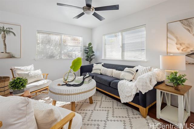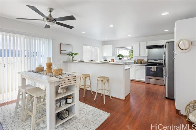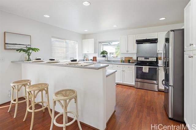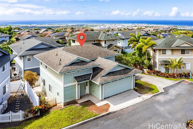 - Experience the perfect combination of privacy, comfort, and convenience in this charming 3-bedroom, 2.5-bath home nestled within the desirable gated Seascape community at Makakilo. Enter through the attached two-car garage, where you'll be greeted by the rich, cherry-toned flooring that flows throughout the open-concept main level and new carpet upstairs. The spacious living room seamlessly transitions into the dining area and kitchen, creating an inviting space for entertaining and everyday living. Upstairs, one of the three bedrooms offers serene ocean views, with the primary suite featuring a private en-suite bath for ultimate comfort and convenience. As a resident of Seascape at Makakilo, you'll enjoy access to a host of community amenities while being in proximity to the vibrant city of Kapolei-known as Oahu's "Second City." With easy access to pristine beaches, shopping centers, popular dining spots, and entertainment venues like movie theaters, you'll have everything you need within reach. Plus, the nearby H-1 Freeway makes commuting and island exploration a breeze. Photos are from when the home was staged. No furniture is currently in the home.