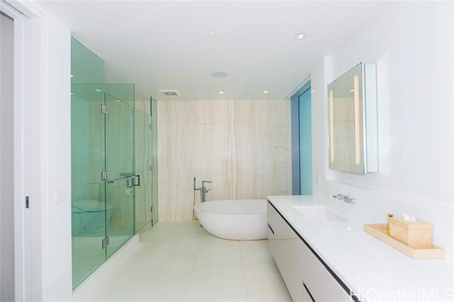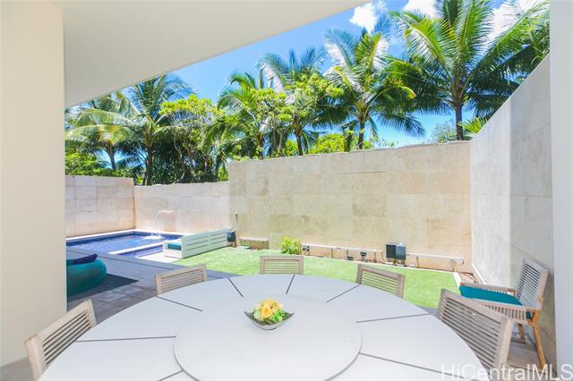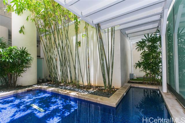 - A remarkably private 4 bedroom, two-level home with its own 2,799 sf yard, backyard oasis, outdoor kitchen, pool/jacuzzi, yet just across the street from Ala Moana Beach. Located in the midst of dynamic Ward Village, this entertainer's paradise also affords access to Waiea's resort-level amenities. Additional highlights: first floor bedRm & full bathRm, attached 2 car garage (~525 sf), mudroom w/a secondary entrance via garage, separate storage Rm (~130 sf), outdoor Subzero fridge & BBQ, commissioned Maya Hayuk wall mural, front yard water feature, interior furniture/layout by design icon Tony Ingrao, built-in sound system w/outdoor speakers, 12 ft ceilings, hardwood oak flooring, motorized solar shades & blackout curtains, Miele appliances (2 ovens, 2 warming drawers, full size wine fridge). Enjoy spectacular ocean views from the building's 7th floor rec deck, w/ amenities: gym, active/passive exercise Rms, sunset bar, party Rm, chef's kitchen, theater, massage Rm, golf simulation Rm, swim/lap pool, spa, sauna, steam Rm, BBQ pavilions and cabanas. Additionally: concierge, security, dog park, & 5 guest suites. Some photos enhanced. Floor plan in supplements section.