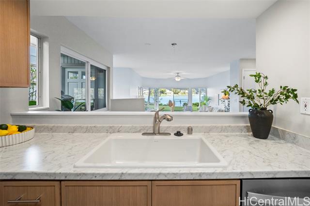 - Marina Lifestyle Meets Island Comfort at Mawaena Kai! Live the ultimate waterfront lifestyle in this beautifully renovated 3-bedroom, 2-bath ground-floor townhome in the highly sought-after, gated community of Mawaena Kai. Offering 1,296 sq. ft. of breezy marina-front living, this exceptional unit features stunning panoramic views of the marina from your covered lanai—perfect for morning coffee or sunset relaxation. Inside, enjoy a stylishly renovated kitchen with new cabinetry, modern backsplash, tile flooring, and a classic white cast iron sink. This unit boasts exclusive direct lawn access to a large grassy area between the home and the marina—deeded solely for the use of this first-floor residence. Ideal for entertaining or simply enjoying the view. Additional highlights include three parking stalls (1 covered, 2 open), pet-friendly policies and located just minutes from beaches, hiking trails, shopping, dining, and entertainment in vibrant Hawaii Kai. Don't miss the opportunity to live on Oahu’s only large private inland waterway with direct ocean access—an ideal setting for boaters, paddlers, and ocean lovers to embrace marina-front living Hawaii Kai!