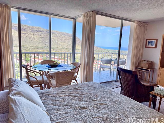 - Situated in the highly sought-after and rarely available 1-stack, this unit occupies a premium location at the very end of the Makai-side of the building. It’s the only stack in the entire complex where you can enjoy unobstructed ocean views and breathtaking sunsets right from your lanai. The exterior windows and sliding glass doors have been upgraded with energy-saving mirrored tint—designed to maximize privacy while still allowing you to fully enjoy the magnificent view. Inside, you’ll find a functional galley-style kitchen and a custom built-in wall unit with a convenient pull-down bed. The wall between the bathroom and dressing area has been thoughtfully removed, creating a more open and spacious layout. Offered fully furnished and move-in ready, this unique unit combines comfort, convenience, and an unbeatable experience.