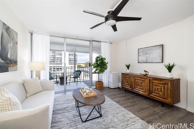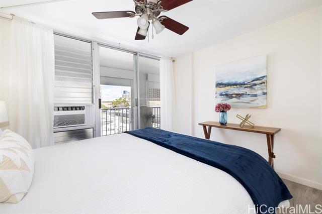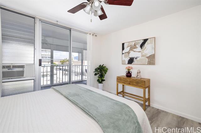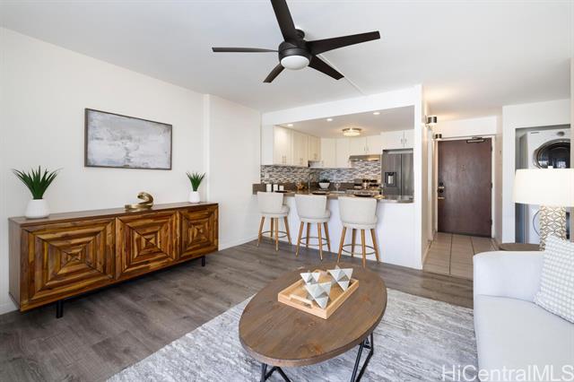 - Welcome Home to Urban Paradise in Honolulu. This beautifully maintained 2-bedroom, 1-bath condo is perfectly situated in the heart of downtown Honolulu. From the moment you step inside, pride of ownership is evident. Floor-to-ceiling sliding doors flood the space with natural light and offer seamless access to a spacious wraparound lanai from every room. The open-concept layout is perfect for entertaining, featuring a modern kitchen with stainless steel appliances, tile backsplash, and an oversized bar. Luxury vinyl plank flooring, full-size washer/dryer, & A/C's. The updated bathroom boasts a sleek walk-in glass shower. Step outside onto your expansive lanai and enjoy breathtaking views of the coastline, glittering city lights, and soothing tradewinds—ideal for relaxation. Atkinson Plaza offers desirable amenities including a rooftop recreation deck, swimming pool, and tennis court. Monthly HOA fees cover cable TV, internet, gas, hot water, and access to all shared amenities. Close Ala Moana shopping, dining, nightlife, and only two blocks from Waikiki Beach perfect for a quick surf or SUP.