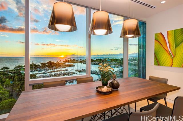 - Panoramic views of the Pacific Ocean, coastline, and Diamond Head welcome you to this exceptional corner residence, offering 2,801 sq. ft. of net living space. This 3BD/3.5BA , includes 2 pkg, and 2 storage rm (#3-72/#3-73). Beginning with a private elevator that opens into your own 217 sq. ft. foyer, 10-foot ceilings, energy-efficient LED lighting, wood flooring throughout, and motorized window shades, and etc. Miele appliances, spacious pantry and storage enhance everyday convenience. Step onto your 154 sq. ft. lanai to enjoy unobstructed views of the South Pacific and Kewalo Basin, with a new pedestrian overpass connecting directly to the Kewalo harbor. Waiea is home to only 171 residences and offers resort-style amenities such as, infinity-edge pool, hot tub, spas, BBQ pavilions, fitness center, theater, golf simulator, and etc. Located in the heart of Ward Village, easy access to Whole Foods, restaurants, boutique shopping, and wellness services—all within a master-planned community designed to support vibrant, multigenerational living. This is the destination, sophistication, and wellness in the heart of Honolulu’s most vibrant neighborhood.