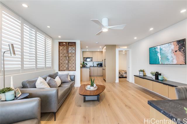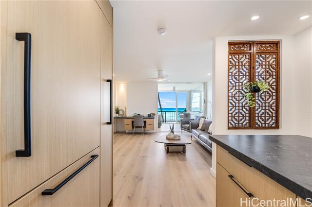 - Renovated 1 Bedroom with Ocean views to enjoy Sunset & Waikiki City lights at Tropic Seas newest listing! Impeccable Design meets Functional Modern Coastal Perfection, local designer Carolyn Pace has executed a masterpiece! Your New Hawaii home features floor-to-ceiling windows that frame the breathtaking view and the open layout includes a well-appointed kitchen with granite countertops, modern appliances & ample designed smart storage. Natural stone flooring enhances the beachside ambiance, while the private lanai provides space to work or dine with the sound of the waves at your Hawai’i Beach Retreat! Tropic Seas Inc. offers exclusive amenities, including private ocean access, a barbecue area, lockable owner storage and a resident manager. Enjoy nearby Kapiolani Park, Kaimana Beach Hotel, Diamond Head & Waikiki Beach, dining & shopping. This is a rare opportunity to own a piece of paradise in one of Honolulu’s most desirable locations. Make your offer today or schedule your private showing now!