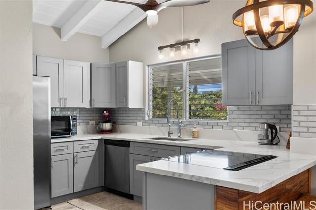 - Located in the sought-after White Sands neighborhood, this one's got location, flexibility, and built-in cash flow. Just a short walk to Magic Sands Beach, this beautifully maintained home offers the perfect blend of residential comfort and income-generating potential. Featuring a flexible layout with a full upstairs residence and three studio suites downstairs, this property is ideal for those seeking a live-in investment or multi-generational living. Upstairs features a bright 2-bedroom, 2-bath layout with vaulted ceilings, large windows, and an open-concept design. The primary suite includes an en suite bath, while the second bedroom is ideal for guests, family, or a home office. Downstairs are three private, separately accessed suites with their own lanais. Lots of potential with this home! Seller open to creative financing, with no money down, turn key properties.
