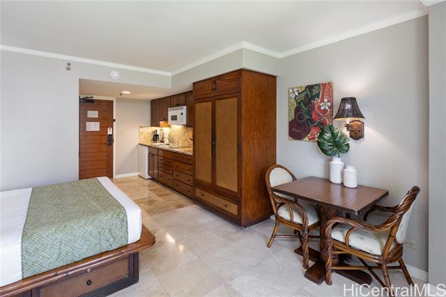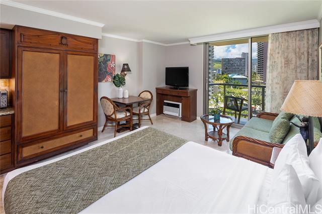 - Discover a unique opportunity with this short-term legal vacation rental in the highly desirable Luana Waikiki. Perfect for investors and 1031 exchange. This fully furnished unit includes a convenient kitchenette with a two-burner stove, travertine flooring, queen bed with pull out sofa, and stunning city and mountain views. The boutique building offers an array of fantastic amenities, including a pool, BBQ deck, fitness center, community laundry, valet parking, and more. Whether you wish to keep the unit for your own use or participate in the Hotel rental management program for additional income, you'll enjoy unparalleled flexibility. Situated in the heart of Waikiki, you'll be close to world famous Waikiki Beach, Diamond Head, Kapiolani Park, Honolulu Zoo, Fort DeRussy Beach, luxury shopping, dining options, and more!
