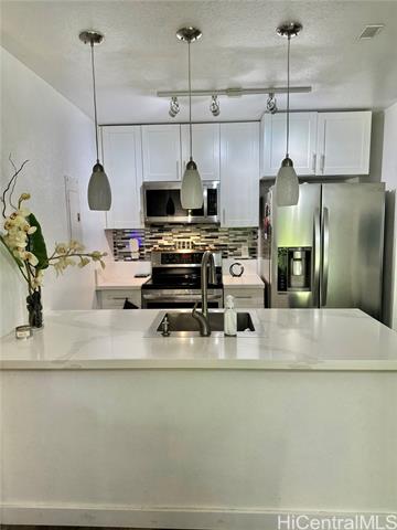 - Welcome Home Hawaii proudly presents this rarely available ground floor townhome in the desirable gated community of Crosspointe. Featuring 2 spacious primary suites with a newly renovated kitchen, all new shacker white cabinets, quartz countertops, upgraded appliances with luxury vinyl flooring throughout, new full size stackable washer/dryer complete with a nicely landscaped private yard to unwind and 2 assigned parking 1 covered, and 1 open lots of guest parking. Amenities to include a sparkling swimming pool, a sand volleyball area, recreation room for parties with BBQ grills, and an exercise room. Pet friendly community. Walking distance to the Aloha Stadium, Pearl Harbor, Arizona and Target.