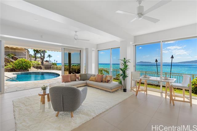 - Perched along the prestigious cliffs of Koko Kai, this extraordinary modern oceanfront estate offers a rare opportunity to own a generational compound or corporate retreat on O'ahu’s prized coast. Encompassing two architecturally striking modern homes behind one secure gated driveway, the estate spans an impressive 195 linear feet of prime ocean frontage and private access to the water. This is true island living with almost 3/4 of an acre of land and a combined 8,000+ square feet of refined living space. Designed for luxurious living and effortless entertaining, each residence opens to expansive lanais, two resort-style swimming pools, and panoramic vistas that stretch from Diamond Head and across the mountains with the dramatic coastline below. The compound features 7 bedrooms, 6 full and 4 half bathrooms, along with state-of-the-art security systems and automatic hurricane shutters for peace of mind. Whether you envision hosting sunset soirées on the lanai, enjoying multigenerational living, or creating a world-class executive retreat, this rare offering is a singular masterpiece of location, lifestyle, and design.