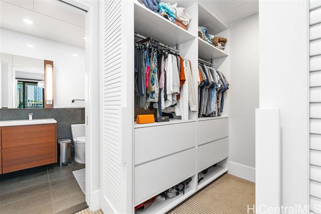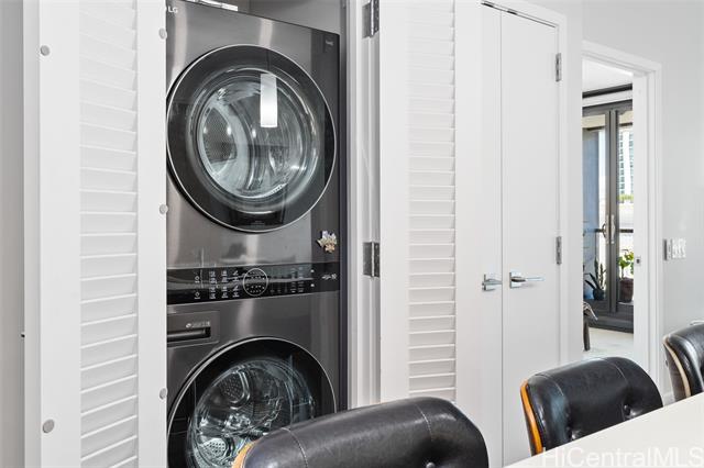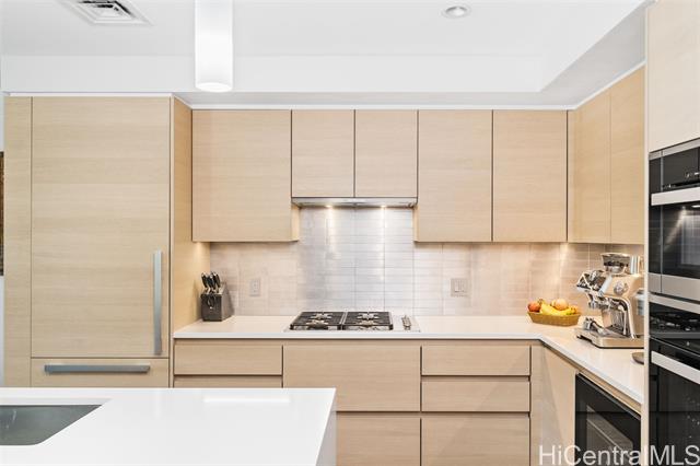 - Step into a world of refined living in this beautiful 1-bedroom, 1-bathroom condo nestled in the heart of Kakaako. Upon entering, you’ll be greeted by an open concept living space featuring high-end finishes and a spacious 94sqft lanai, unique to select Podium units. The unit boasts top-of-the-line Miele appliances, sleek quartz countertops, custom cabinetry, hard wood floors, built in wine-cooler, new full-size washer/dryer, and custom auto blinds for added privacy. This property includes a 64sqft air conditioned storage unit AND additional storage locker conveniently located on 5th floor, which can be used or rented out. Unwind and indulge in Anaha’s exclusive amenities, featuring state-of-the-art fitness center & spa, private Chef’s Kitchen & Dining Room, BBQ cabanas, complementary coffee service, movie theater, and the famous glass bottom pool. Located in the vibrant hub of Ward Village, enjoy the convenience of having some of Kakaako’s best restaurants and shops at your doorsteps such as Merriman’s, Istanbul, and a private residential lobby directly across from WholeFoods. Experience Kakaako living at it’s finest in this captivating condo and schedule your tour today!