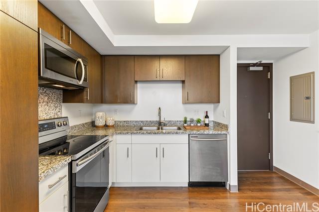 - Welcome to 988 Halekauwila—a modern, high-rise residence in the center of Kaka‘ako, Honolulu’s rising urban core. This 2-bedroom, 2-bath unit offers a smart layout with granite countertops, stainless steel appliances, carpeted bedrooms, and sleek porcelain tile in the bathrooms. Each room is cooled by its own window A/C unit for year-round comfort. Step outside your door and enjoy incredible building amenities: panoramic ocean and mountain views from the rooftop deck, a movie theater, music studio, fitness center, dog run, BBQ areas, indoor/outdoor lounges, and play zones for the kids. Downstairs? You’ve got Longs Drugs, with SALT, Ward Village, and Ala Moana just minutes away. Restaurants, bars, shopping—it’s all right here. Ready to move in? Schedule a private showing and make this Kaka‘ako lifestyle yours.