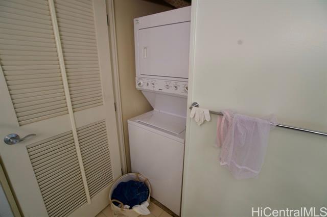 - High floor rare '02 stack with 2 bedrooms and 2 full bathrooms! Beautiful mountain views with an amazing breeze on the cooler side of the building. Open kitchen, granite countertops, hardwood flooring, central air conditioning, and washer/dryer in the unit are just some of the great benefits of this unit. The unit was remodeled in 2023 with all new wooden flooring, new refrigerator, new washer/dryer, new toilet, and new lights! The building amenities include tennis/pickleball courts, playground, theater room, BBQ area, party room, and plenty of recreational areas. The building also allows pets (check for exact policy) and features 24/7 live security.