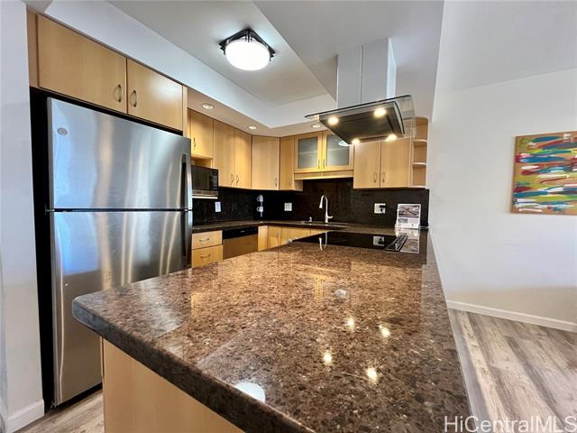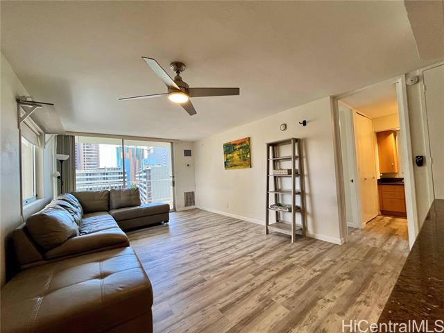 - SELLER OFFERING $10,000 CREDIT toward a mortgage rate buydown or buyer closing costs! Looking for a Waikiki condo with parking, views, and resort-style amenities? Welcome to this upgraded 1-bedroom, 1-bath end unit at the highly desirable Villa on Eaton Square. Enjoy a bright, breezy open layout with luxury vinyl plank floors, a modern kitchen with granite countertops, stainless steel appliances, and central AC. Your private lanai offers mountain views plus city, treetop, garden, and peekaboo ocean scenery. Maintenance fees include electricity, cable TV, high-speed internet, water, and sewer—making monthly costs predictable and easy. Live in the heart of Waikiki, just minutes from Ala Moana Shopping Center, world-famous beaches, restaurants, nightlife, and Food Pantry grocery store. Villa on Eaton Square features a rooftop pool, BBQ area, fitness center, and 24-hour security. Pet-friendly and VA approved—perfect for first-time buyers, investors, or anyone seeking a vacation-style home in paradise.