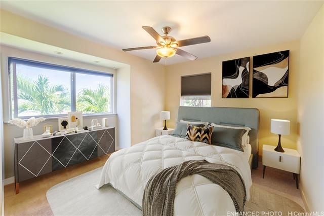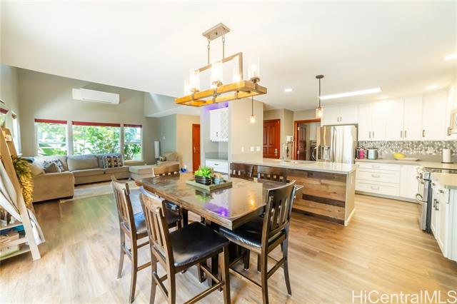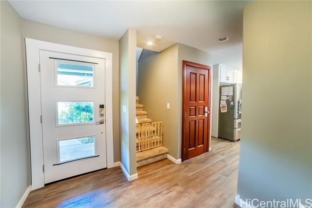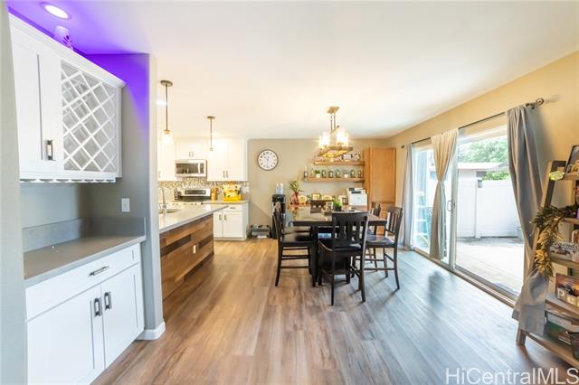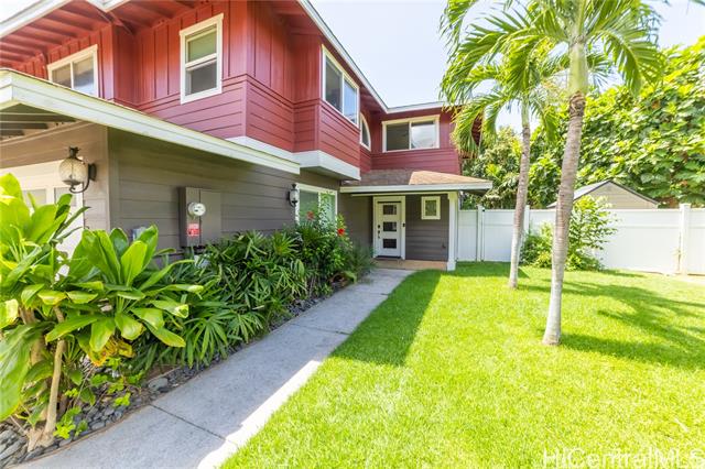 - Welcome to this spacious 4-bedroom, 2.5-bath townhome in desirable Ho'omaika'i Village at Ma'ili Beach. Located on a private, dead-end street, this well-maintained home offers privacy and peace. The upgraded kitchen features quartz countertops, soft-close cabinets, stainless steel appliances, and a new refrigerator. Luxury vinyl plank flooring flows through the main living areas, with plush carpet in the bedrooms. The separate laundry room includes high-efficiency front-loading LG washer and dryer. The vaulted-ceiling living room is bright and open. The main bedroom offers a large walk-in closet and a private patio. Enjoy a private, gated, landscaped yard with patio and irrigation system. A storage shed is included. Additional features include a 2-car garage & 2 open parking spaces, split AC and ceiling fans throughout, and a leased PV solar system with 2 Tesla batteries. With modern upgrades throughout, this townhome is move-in ready.