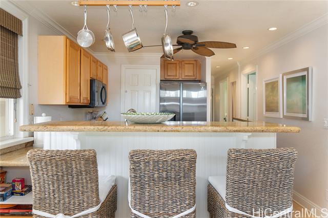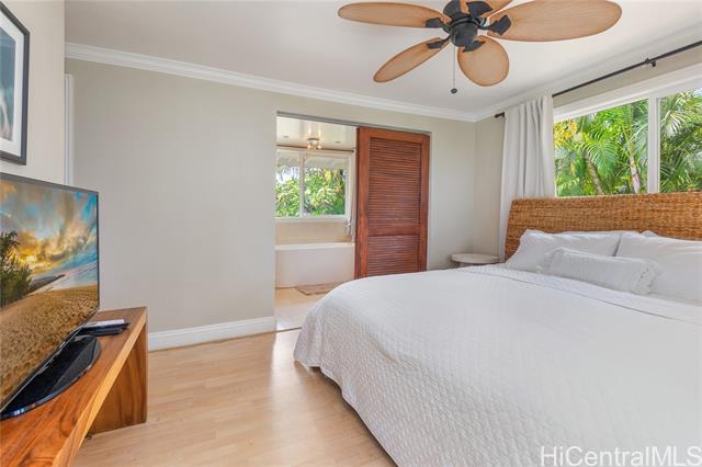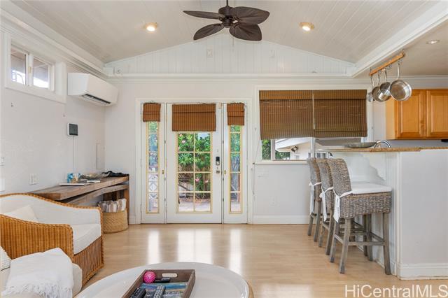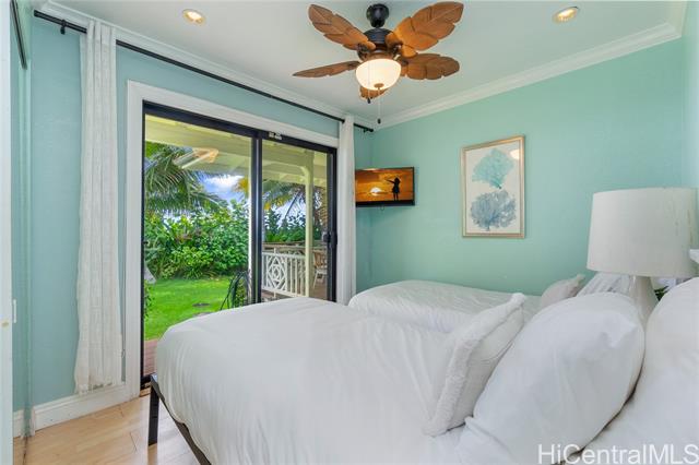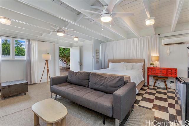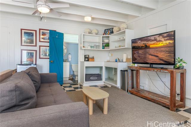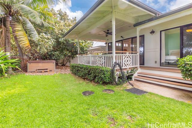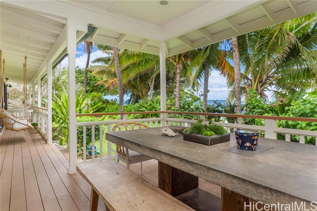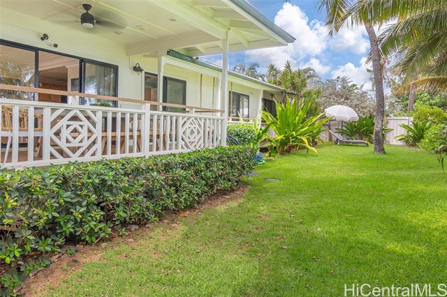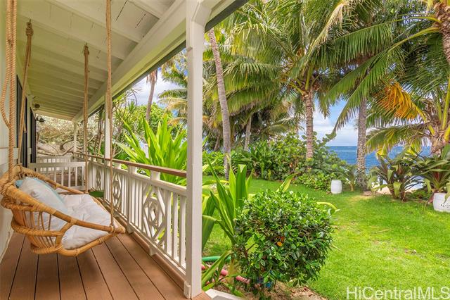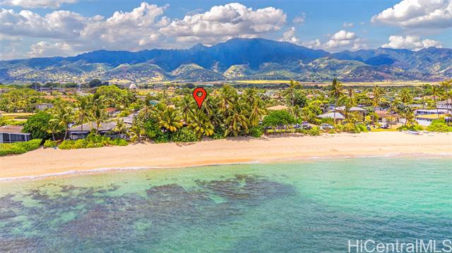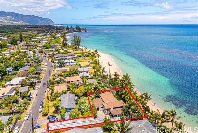 - North Shore Luxury Living Rare 95’ of Beachfront Bliss. Tucked away on a quiet stretch of Waialua coastline, this beautifully renovated and fully furnished beachfront estate offers 95 linear feet of pristine white sand and unobstructed ocean views. The main residence features 3 bedrooms and 2 full bathrooms, showcasing vaulted tongue-and-groove ceilings, Pella windows, rich Pergo flooring, and a sun-filled open concept living space designed to capture endless mauka-to-makai breezes. A chef’s kitchen awaits with sleek granite countertops, glass block accents, and stainless steel Jenn-Air appliances, perfect for preparing meals to enjoy on the expansive ocean-facing lanai. Just steps from the main home is a charming detached studio cottage with its own bathroom and kitchenette, ideal for guests, extended family, or use as a home office or art studio. Located just 2 miles from Hale?iwa town. Ample parking, an additional outdoor storage room with bath, and over 9,800 sq. ft. of land, this property offers a rare blend of function, flexibility, and North Shore elegance. Showings by appointment only.