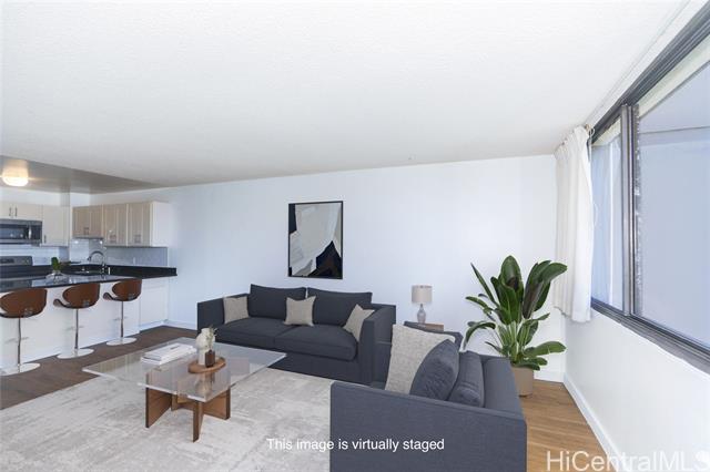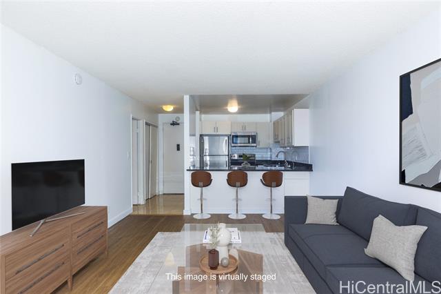 - Experience the perfect blend of comfort and convenience in this high-floor unit on the cooler side of the Ewa Tower. Enjoy breathtaking ocean and mountain views while being just minutes from Downtown, Chinatown, Schools, Restaurants, and Shopping. New luxury vinyl plank flooring was installed in the living room and bedroom prior to listing. This home includes one assigned parking space (#3385), 24-hour security, and a dedicated resident manager for peace of mind. The lush amenities include a swimming pool, serene garden walkways, a BBQ area, and recreation space, offering an ideal retreat after a long day. If you’re looking for a home that keeps you close to work and play, your search ends here! *One or more photos may have been enhanced*