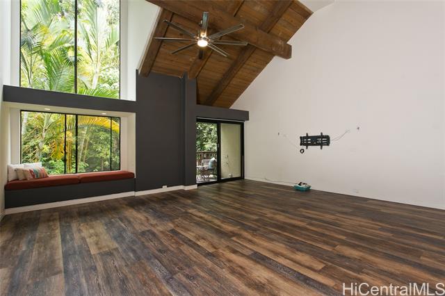 - Experience the best of tropical living in this spacious 3-bedroom, 2-bath tri-level townhome nestled in the beautiful surroundings of Kaneohe. Feel like you're coming home to a private sanctuary, with vibrant tropical flowers and lush greenery visible from every level. This thoughtfully renovated residence features custom details, vaulted ceilings on the main level, a primary suite upstairs, two additional bedrooms on the lower level and two assigned parking stalls. Sunlight floods through large windows and exposed ceiling beams add to the open, airy ambiance. The complex offers guest parking, a pool, jacuzzi, kiddie pool, sauna, and scenic walking paths for your enjoyment. Just waiting for you to call it Home.