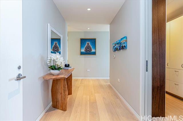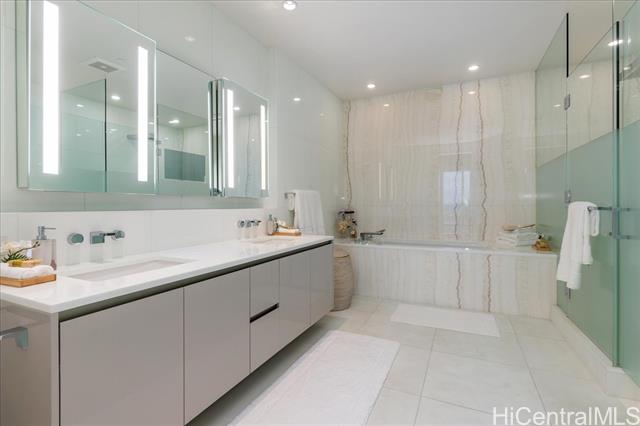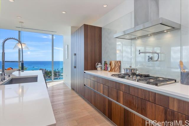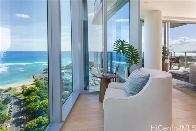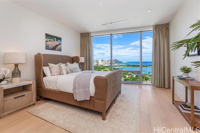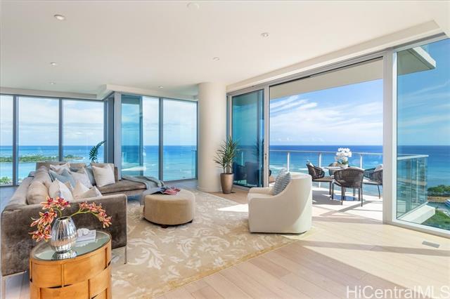 - Welcome to Waiea, the crown jewel of Ward Village and Honolulu’s lowest-density ultra-luxury residential tower, offering just 171 residences. This rarely available, seamlessly combined double unit (00 & 02) spans over 5,000 sq. ft. - creating one of the largest and most refined condos in all of Hawaii. This expansive 4 BD, 4.5 BA, 4 Pkg home features a private office, wet bar, versatile media room, walk-in pantry, expansive living and dining areas - all framed by uninterrupted panoramic views of Diamond Head, the Pacific Ocean, Ala Moana Beach Park, and Waikiki from every room. Enter via private elevator into a grand foyer leading to generous living and dining areas with an approx. 10 ft ceilings, wood flooring, Miele appliances, electric shades, and 152 sf lanai. The thoughtfully designed layout includes primary bedroom’s two oversized custom walk-in closets, over $1M in bespoke upgrades, finest materials and craftsmanship. Waiea is a Silver-level LEED-certified energy-efficient building offering 24 hour security, concierge, resort-style amenities, and 5 guest suites. Just steps from dining, shopping, and beaches, this is luxury island living at its finest.