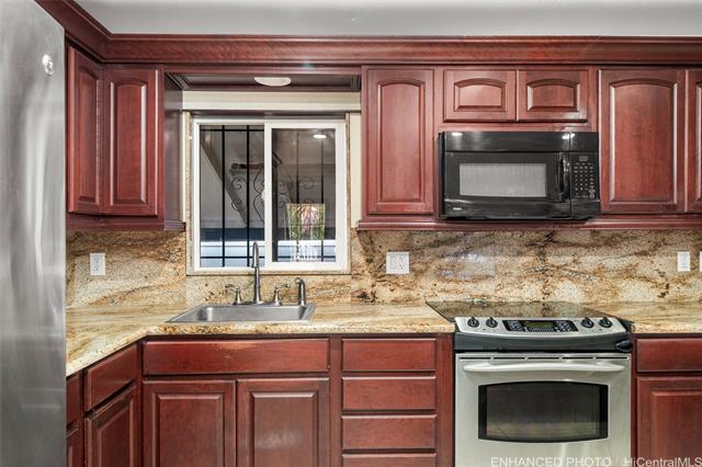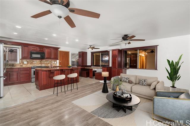 - Motivated seller, bring your best offer. This loved and lived-in home consists of 3-BR/2-BA, a spacious garage, and a yard to soak up some sun or enjoy an outdoor BBQ under the mature trees and foliage. The property is a short distance from Makaha Elementary School. Washer and dryer hookups are available (stacked or side-by-side). There is plenty of outdoor space to make it your haven away from the day-to-day and enjoy the beautiful mountain views. Quad outlets are installed outside. The home is serviced with a 200-amp electrical panel. The spacious kitchen is beautifully designed to host get-togethers with a welcoming island to gather friends. Imagine the possibilities to customize this home to your taste and add your personal touches! A Direct TV satellite dish and Antenna exist on the re-coated roof and are equipped with a state-of-the-art photovoltaic system. Even the water heater operates under solar. The home's windows are tinted, the living room AC unit is 36,000 BTU, and the bedrooms' AC units are 12,000 BTU/each.