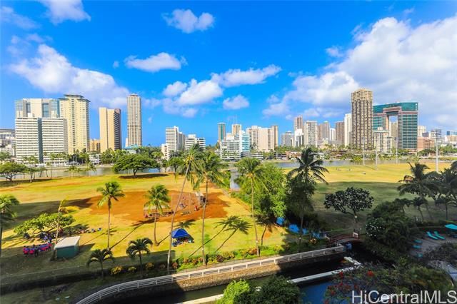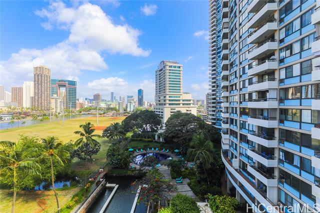 - VA assumption is available at 2.75% rate for qualifying veterans only. Perched on the coveted corner of a well-maintained, amenity-rich building, this highly desirable and rarely available “08” end unit welcomes you with stunning views of the Waikiki skyline and the Ala Wai Canal. From sunrise coffees to sunset wind-downs, the expansive 210 sq. ft. wrap-around lanai offers a front-row seat to the beauty and rhythm of the city. Inside, this bright 2-bedroom, 2-bath residence features a spacious open layout designed for relaxed island living. Enjoy newer flooring in the kitchen and both bathrooms, along with a beautifully updated kitchen featuring new countertops, cabinetry, and range—perfect for cooking or entertaining. Additional thoughtful upgrades include a primary bathroom waste line replacement, a newly installed in-unit water shutoff valve for added peace of mind, and the convenience of a small private storage cage located on the 6th floor—assigned specifically to Unit 608. A full-sized washer and dryer hookup in-unit, covered parking, and ample guest stalls add even more value. And with Waikiki’s world-class beaches, shopping, and dining just moments away.