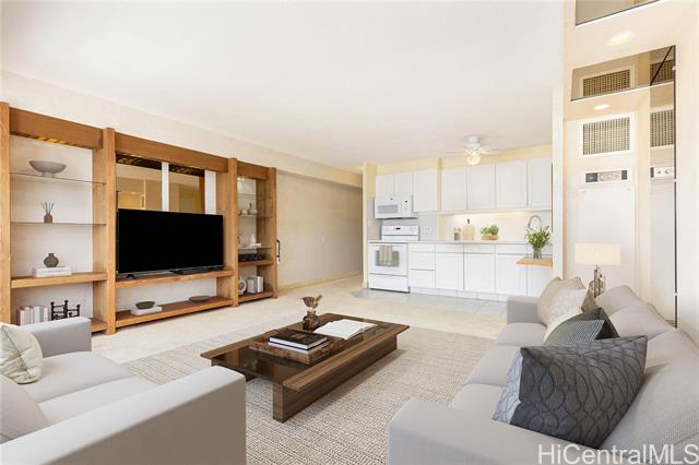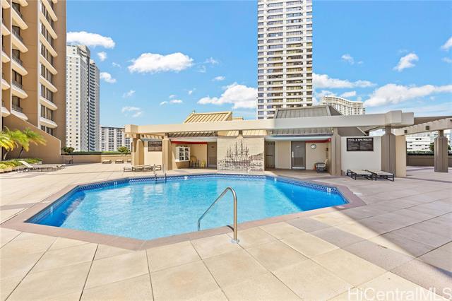 - High floor large studio. Condo has been remodeled in 2012. The unit is 96.893% fee simple and 3.107% leasehold. Quarterly lease rent $22.82 or $7.61 per. mo. The AOAO has the right and obligation to purchase the remaining leased fee interest before the lease ends on 12/31/2039. The 3.107% interest must be sold. The method to establish the price of the remaining leased fee interest has been agreed upon. Great location for easy access to restaurants, convenience stores, Ala Moana shops, beaches, surf breaks, and on the Bus and trolley line. Seasoned building managed and Board of Directors with wonderful staff, 24-hour security, and all the amenities you need. Amenities include Heated swimming pool, BBQ area, (2) exercise rooms, sauna, recreation/sunning area & whirlpool. Real property tax amount is based on the 2025-26 assessment. Commercial spaces on ground floors. Photos with furniture Virtually staged.