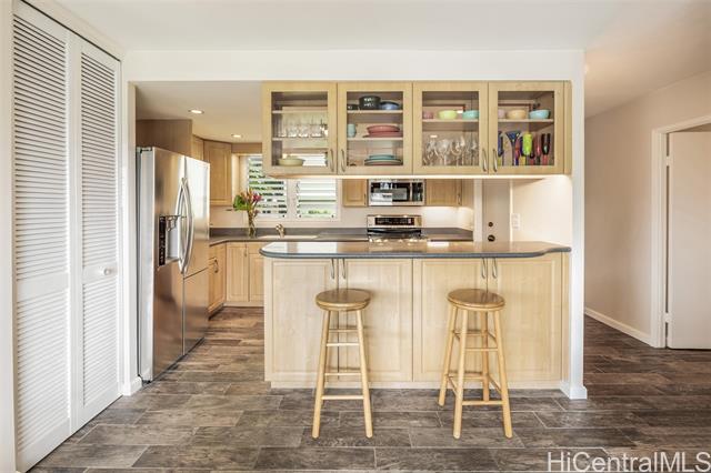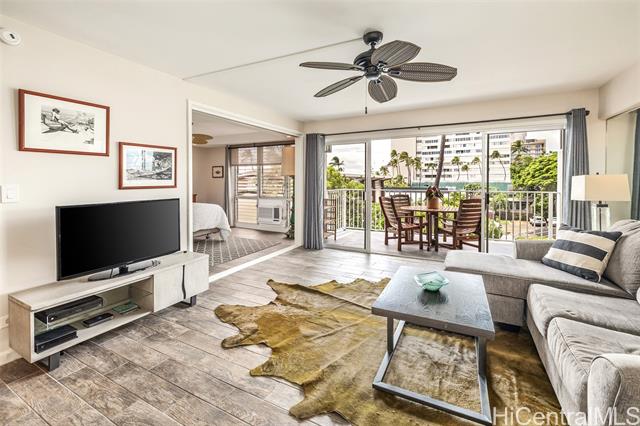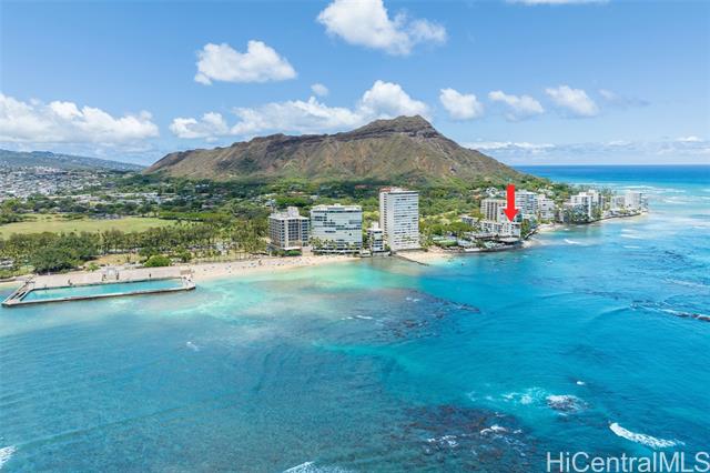 - Discover oceanfront living in this light, bright one-bedroom, Castle Surf condominium, ideally located in one of the Gold Coast's most beloved oceanfront buildings. Perched on the slopes of iconic Diamond Head, this residence offers a rare blend of tranquility and convenience in a walkable, coastal neighborhood. Enjoy direct water access just steps from your door and take in stunning sunsets from the spacious lanai--perfect for relaxing or entertaining with the Pacific Ocean as your backdrop. Large windows invite natural light and gentle sea breezes, creating a serene indoor-outdoor lifestyle. This thoughtfully designed home includes one covered parking space and private storage, adding everyday ease to your island retreat. Whether you're looking for a full-time residence or a vacation home, this is your chance to own a piece of paradise on Oahu's prestigious Gold Coast. Castle Surf is a well-managed building that recently completed upgrades including new railings and spalling repair, and seller has paid off all assessments.