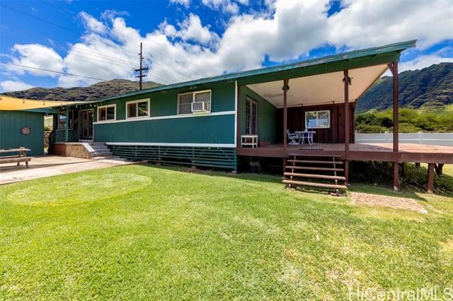 - Make this your dream homestead on this spacious 1-acre lot. With a stone wall fronting the street and two gated entrances requiring a code for security; this property allows you to embrace a lifestyle of self-sufficiency and tranquility. There is plenty of land to grow your own food and convert into your very own oasis. The country zoning also offers versatile options to build an accessory dwelling unit (ADU) or convert the single family dwelling into a double single-family home.In the cozy 3-bedroom, 2-bathroom home (last renovated in 2010), continue the tradition of creating cherished memories with family and friends; whether it's enjoying a warm hearty meal around the dining table indoors or outside on the deck under the moonlit sky. For beach lovers, Makaha Beach is just down the street, offering pristine waters for swimming and surfing. Fishing and diving enthusiasts will appreciate the convenience of storing boats on the property, with Waianae Boat Harbor only minutes away. Don't miss out on this rare gem of an opportunity!
